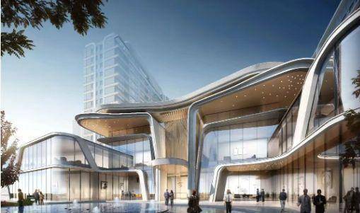 在建筑外立面设计上,缦云广州采用了大面积铝板幕墙,并融入流线型曲线设计,让整体建筑呈现出较强的现代感与未来感。