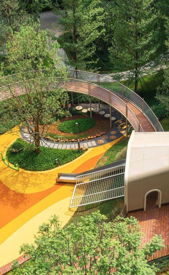 项目并不是简单地做“绿化”,而是通过三台地结构,把不同功能分布在不同高度与空间层次中,让园林本身成为一种可使用、可互动的生活空间。