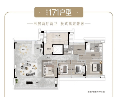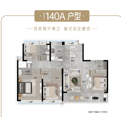 目前在售约 140 - 253 平南向板式住宅,涵盖四至五房。如建面约 140a㎡高定四房景观视野佳,板式布局南北对流;建面约 140b㎡高定四房北瞰园林南望校园,实用率高;建面约 171㎡奢适五房享长隆头排景观,专梯入户;建面约 205㎡奢适四房为中轴园林环幕景观楼王,双主卧套房设计;建面约 253㎡定奢五房同样为楼王位置,拥有约 10.3 米宽巨幕阳台等奢华配置。七大高品质超感精工对标宝格丽酒店,携手杜拉维特、汉斯格雅等德系一线国际品牌,铸就高定奢宅品质。