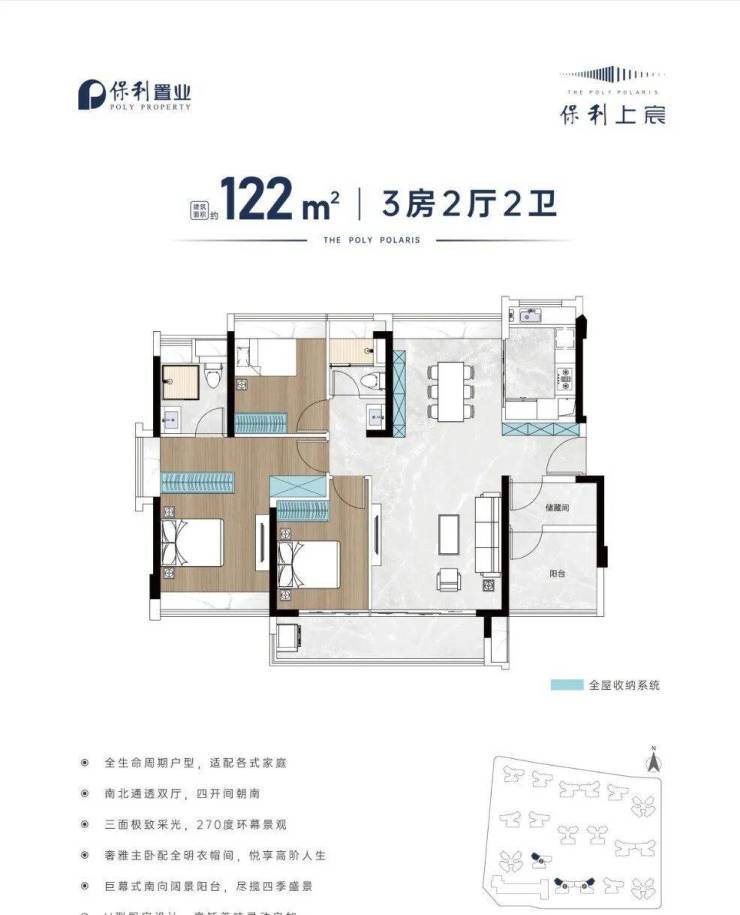 122㎡:保利明星户型 南北对流 三面采光 四开间南向