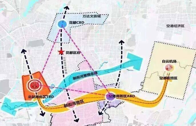 花都中轴CBD、北站新城、空港经济圈将形成黄金三角的聚能效应。
