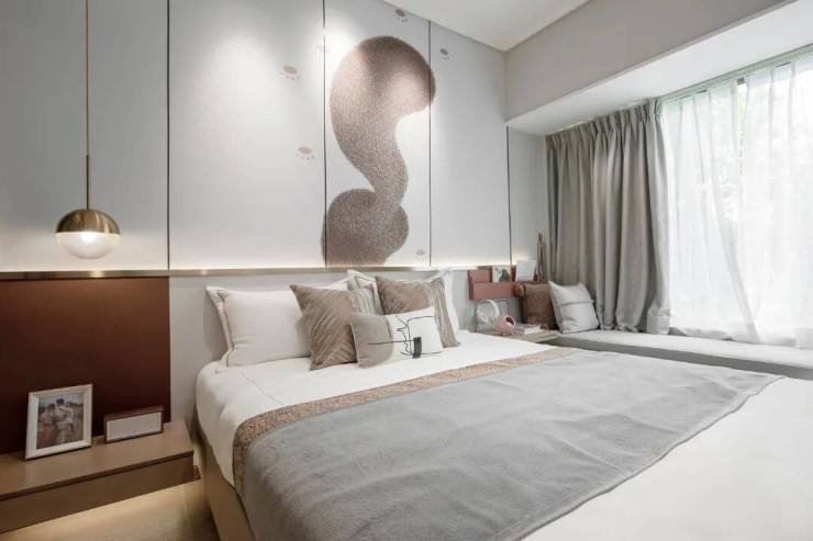 主卧、次卧延续整体温暖自然的风格,舒适惬意。半圆、圆、球形的灯饰作为隐藏线与视觉元素,引领空间好玩好奇的猫咪视角。