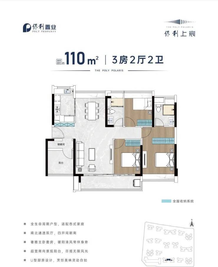 110㎡:保利轻奢户型 南北对流 四开间南向