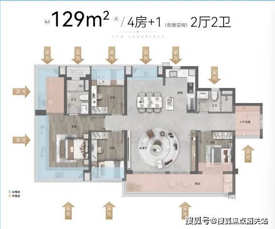 125㎡四房两厅两卫:南北通透,双阳台设计,客厅与餐厅一体化,空间感十足,适合二胎家庭或三代同堂;