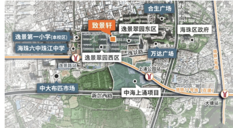 致景轩开创性地将行政资源与交通枢纽深度融合:项目与海珠区政府直线距离仅800米,直接享受政务服务、城市更新等政策倾斜;同时,依托在建的11号线逸景路站TOD模式,规划建设集商业、办公、文化于一体的10万㎡综合体,形成“15分钟政务服务圈”与“5分钟生活圈”的双重覆盖。这种“行政中枢+交通枢纽”的双核驱动,使项目不仅成为居住首选,更具备资产保值增值的强确定性。
