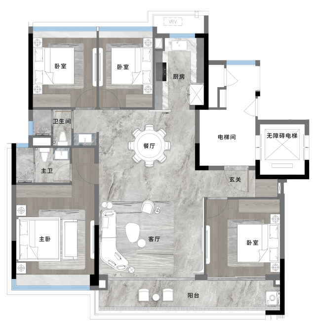 户型:约125平的板式四房小高层,属于是轻奢改善户型,房率近120%,居住尺度可与超150平户型相媲美,全屋南北对流,南向面宽约 11.6 米