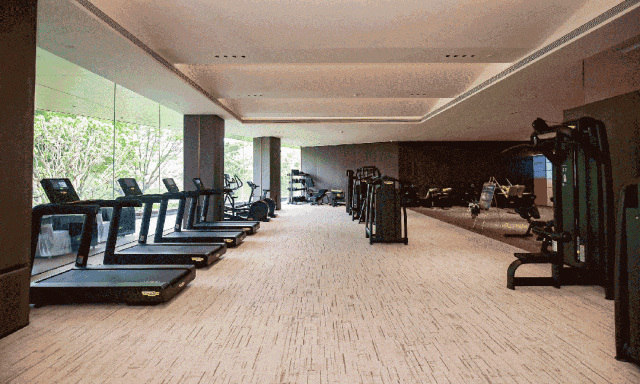 湖景健身房涵盖多种健身器材,品牌皆是泰诺健,它是宝格丽、半岛、W 等多家五星级国际奢华酒店的同款,让业主在锻炼的同时还能欣赏到美丽的湖景。