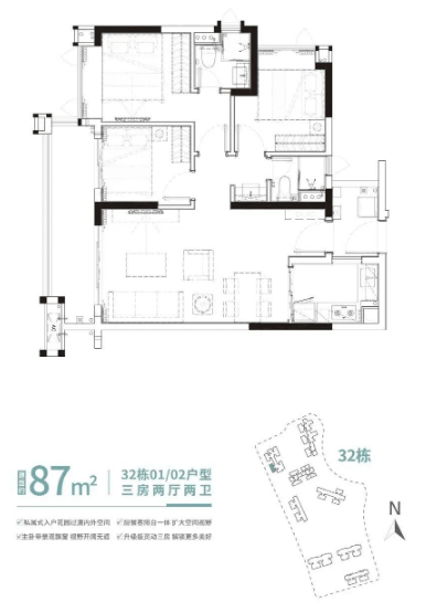 广地花园·观灏加推的新品32栋悦景楼座,提供多种面积段的选择:86㎡、96㎡、100㎡悦景三房。每个户型都经过精心设计,充分利用每一寸空间,确保多面采景和通透采光,打造全方位人性化居所。