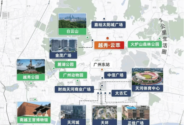 越秀云萃位于广州市中轴之上,距离珠江新城仅5公里,地理位置优越。周边配套设施齐全,交通便利,且临近白云山,提供了极佳的自然景观资源。此外,该项目还受益于京溪广智片区旧改计划,未来将新增一所36班小学,并打造国家级类脑研究中心、医药展销等产业,极大提升了区域的整体发展潜力。