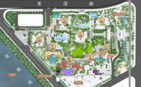 项目周边规划有四大公园环伺:花地河绿道公园、茶滘榕诚公园、铁路文化公园(一期已开放)以及华南植物园科普园(规划中)。尤其是依托百年广钢铁路文脉打造的铁路文化公园,不仅保留了工业记忆,更赋予社区独特的文化厚度与休闲空间。高达约47%的绿地率,让“一半公园一半城”不再是一句口号,而是触手可及的日常。