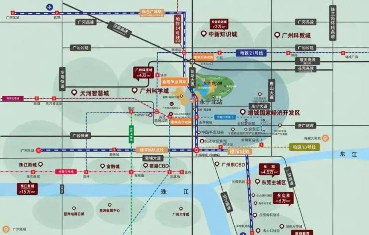 金地香山湖的交通便利性是其一大亮点。项目紧邻穗深城轨荔湖城站(新白广段,在建中),通过一站换乘广州地铁21号线(镇龙站换乘),可实现快线3站直达天河,更可通过城轨直达广州白云机场和深圳宝安机场。此外,出门即享花莞高速(已开通)、增天高速(已动工)双高速出入口,直达天河珠江新城,进一步提升了出行效率。