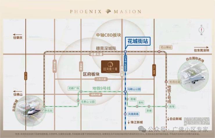 3. 主干道:项目位于凤凰北路上,这条道路贯通花都南北,向北可直达广州北站,向南可连接花都大道、广清高速,自驾出行十分便利。