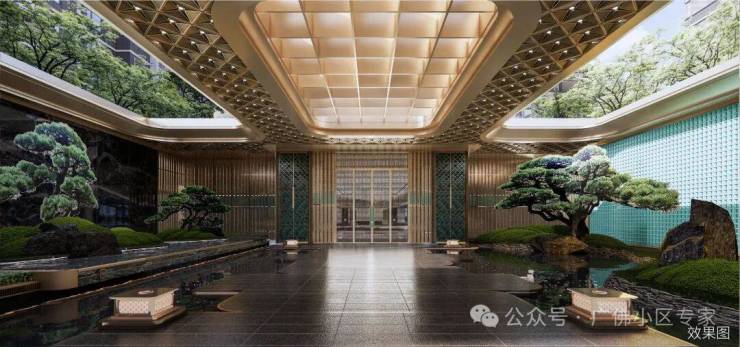 门府配备约7米高超尺度归家大堂,双层飘板塑造凤凰展翼的大气形态,走进小区,就能感受到满满的仪式感,不管是自己回家,还是亲友来访,都十分有面子。