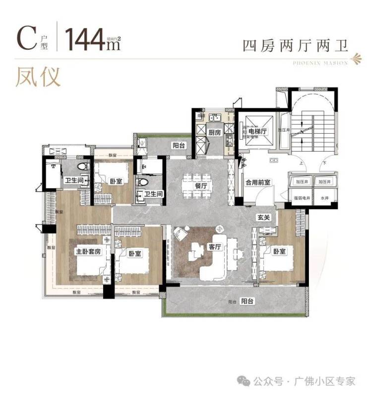 3. 总户数:共规划896户,均为纯四房改善户型,圈层纯粹,没有刚需小户型的拥挤感,居住舒适度更高。