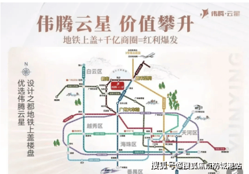 伟腾云星地理位置优越,位于白云新城 CBD 核心地带,紧邻白云山绿肺,同时地处广州设计之都中心位置,既享受白云新城的高端配套,又能承接设计之都的产业红利,区位价值突出。交通方面,项目交通优势显著:为地铁 14 号线鹤南站(在建中)上盖,未来通车后可快速直达广州火车站、嘉禾望岗等重要交通枢纽,换乘便捷;自驾出行可便捷接入黄边北路、白云三线、鹤龙一路、机场路、广云路等城市主干道,约 600 米即上华南快速,快速通达广州全城及大湾区其他城市,无论是地铁还是自驾,都能满足日常通勤与跨区出行需求。