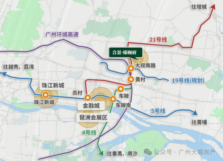 值得注意的是,合景臻颐府所在的智谷板块正处于快速崛起的关键期。随着地铁线路的规划和建设,以及城际轨道的开通,该区域与广州其他核心区域的连接将更加紧密。特别是地铁19号线大观南站(规划中,预计2025年开通)的设立,将进一步强化区域与广佛衔接通道的联系,拓展项目的辐射范围。此外,广佛东环线和穗莞深城际轨道的建设,也将使项目直通白云机场和广州南站两大交通枢纽,实现与其他城市的无缝互联。这种立体化的交通网络,不仅提升了居民的出行效率,也为区域的经济发展和人口导入提供了强有力的支撑。