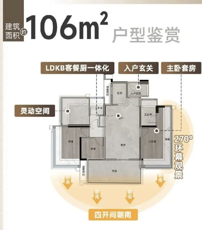云樾和鸣的核心价值,在于其精准解决了当前市场下主流改善客群的核心焦虑:在主城核芯,能否以更合理的总价,获得一处空间极致高效、品质有保障、社区纯粹、配套成熟且无需漫长等待配套成熟期的居所?项目的回答是肯定的。它通过拥抱“住宅新规”,将建筑面积约100-138㎡的主力户型做到了超过100%的惊人实用率,这意味着同样的建筑面积,可以获得远超传统户型的使用空间。例如,建面约100㎡的户型,就能实现“南北对流、四开间朝南、LDKG一体化方厅、南向双阳台”的纯粹四房格局。这在以往,往往是建面120㎡以上户型才能实现的尺度。在中心区房价高企的背景下,这种“空间魔术”将上车核心区四房的门槛,大幅降低至约500万级别,堪称一种“降维打击”。