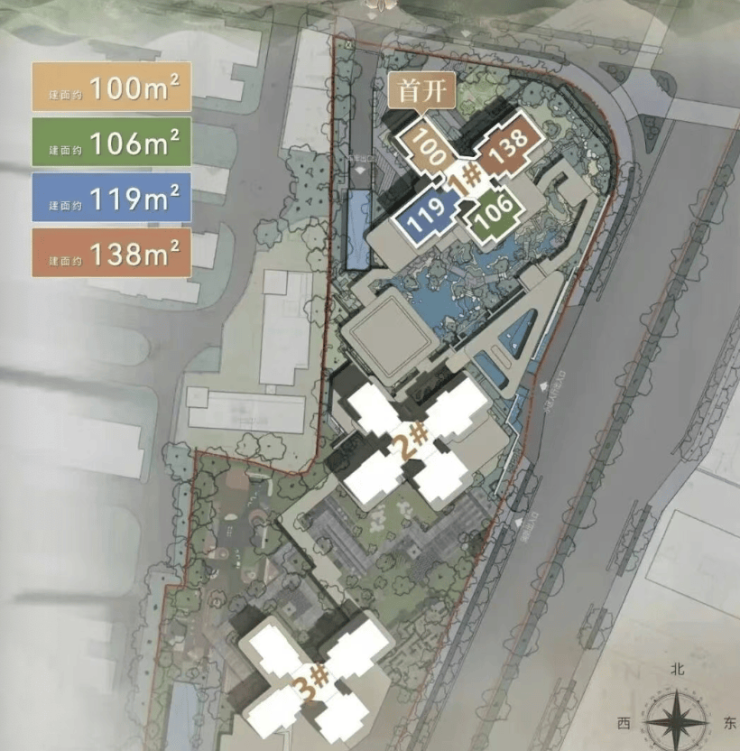 在售户型:建面约100㎡、106㎡、119㎡、138㎡ 纯粹四房