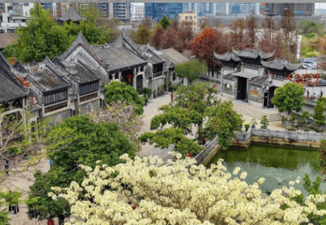 在喧嚣的城市中,静谧的居住环境尤为珍贵。星河·余荫溪谷通过“余荫山房文脉+岭南园林+六大公园”的多重生态设计,营造出“把家安在天然氧吧里”的居住体验。项目紧邻岭南四大名园余荫山房,推窗即可欣赏百年园林的白花风铃木与青砖黛瓦;自身配建复刻余荫山房精髓的岭南园林,涵盖清芬阶、吟月池、无事亭等六大主题景观,搭配下沉式山水会客厅、风雨连廊等设施,四季皆可赏景,尽显诗意生活。此外,项目周边六大公园环抱,负氧离子浓度约10000/cm³,数倍于珠江新城。这种“文脉园林+区域绿肺”的多层次生态格局,让余荫溪谷的业主既能享受“下楼即繁华”的便利,又能随时切换至“宁静生活模式”,实现繁华与静谧的完美平衡。