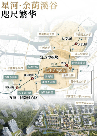 交通的便捷性,决定了城央生活的效率。星河·余荫溪谷构建了“地铁+城市主干道”的立体交通网络,实现半小时直达万博CBD与琶洲CBD。项目距离地铁7号线板桥站约700米,2站可达万博、5站可达琶洲、6站可达珠江新城,同时可换乘18号线快速通达南沙、深圳等湾区城市;自驾方面,项目紧邻南大干线,一脚油门即可直达万博CBD(约10分钟)、琶洲(约20分钟),走广台高速、南沙港快速可快速通达全城。这种“双地铁+双快速路”的交通格局,让余荫溪谷成为名副其实的“城央通勤枢纽”,无论是日常通勤还是周末出行,都能高效便捷。