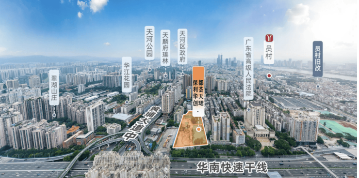 项目位于天河区员村一横路东侧、黄埔大道中,处于珠城与金融城两大CBD的交汇核心区域,享受城市繁华与便利交通的叠加红利。地块周边有珠江公园、天河公园等自然景观,同时毗邻凯旋新世界及汇月台等高端住宅,区域价值与居住品质兼具。