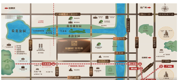 “半小时广佛肇生活圈”不是口号,而是金悦府业主的日常。项目坐拥“4高速+1城轨+2地铁”的立体交通网:广三高速、广佛肇高速、佛山一环、珠三角环线高速环绕四周,50分钟直达广州天河CBD;已通车的广东城际轻轨三水北站,串联肇庆、佛山、广州、清远、东莞、惠州六城,未来还将接入广佛环线,通勤效率大幅提升。更值得期待的是,佛山地铁4号线(在建)和12号线(规划)将设站于三水新城核心区,距离项目仅数公里。据2025年底最新规划公示,4号线预计2027年试运营,届时从三水新城出发,30分钟内可抵达禅城祖庙、季华路等核心商圈。对于在广佛工作的家庭而言,这里既能享受低密度宜居环境,又不牺牲通勤便利,堪称“进可攻、退可守”的理想居所。