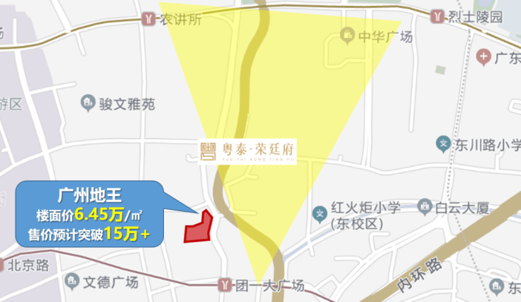 粤泰·荣廷府坐落于广州市越秀区东华西路52 - 56号,位于东濠涌高架路与东华西路交叉口的东南角,稳稳占据老城中轴的关键位置。这里宛如一个汇聚各方精彩的枢纽,不仅拥有现代商业、教育、医疗等完善配套,还完好地保留着浓郁的老广人文氛围。东边紧邻中华广场及广场商圈,住户能够轻松享受标杆式的购物娱乐体验,同时优质的医疗配套也近在咫尺,为生活提供坚实保障。西侧的文明路商圈更是别有一番韵味,图书馆、文化宫、纪念馆错落有致,地道的百年美食小店星罗棋布,尽显广州的精髓文化,完美实现了现代化与传统情怀的交融共生,让居住于此的人们既能感受都市的繁华,又能品味历史的厚重。售楼处已认证购房咨询热线 售楼处电话:400-828-5661