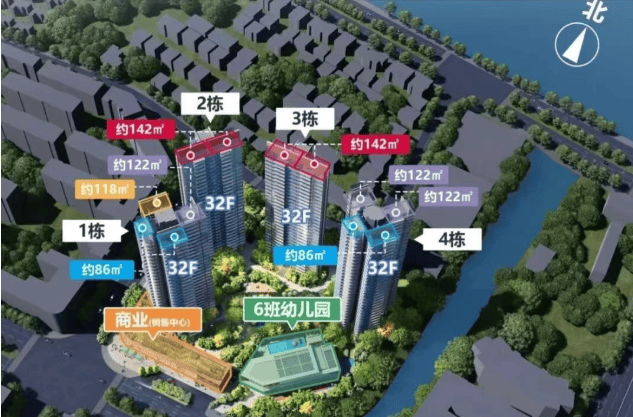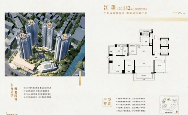 项目主要提供118平、122平、142平三种户型选择。所有产品均为全南向布局,实用率最高可达114%,大户型专梯专户,部分户型主卧带有270°飘窗,空间利用率高。