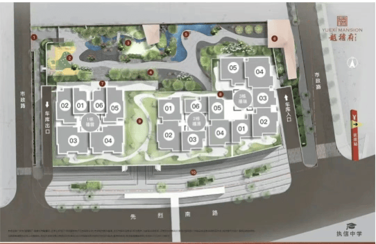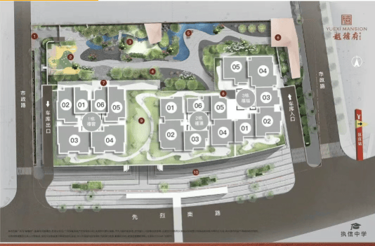 在容积率高达8.02的老城区,保隆越禧府仍努力营造居住品质感。项目规划约6000㎡宋式园林,号称“越秀至大花园”,通过亭台水景、曲径回廊、古韵铺装等元素,打造具有东方美学意境的社区空间。