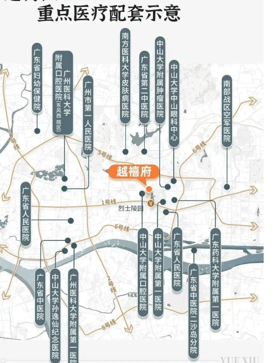 医疗:中山一院、广医一院、中山眼科中心、肿瘤医院等三甲机构密集分布;