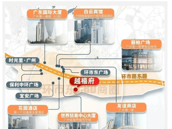 商业:自带1.4万㎡商业体,1公里内覆盖中华广场、东山口、时光里、广州友谊商店等高端商圈;