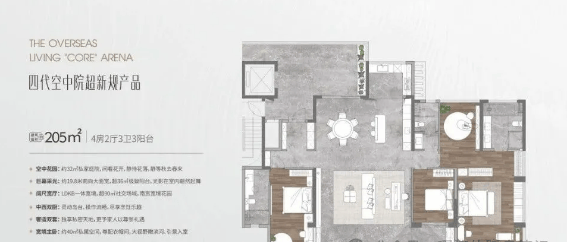 项目户型面积为 132 - 205㎡的四代空中庭院,户户空中庭院,最高使用率约 130%。户型设计充分考虑舒居、社交、度假与亲子等多样需求,L 形大开间无界宽厅连接南向超大阳台,住户可尽情享受滨海自然风光,实现奢华空间与自然景观的完美融合。