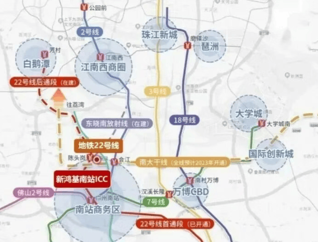 项目紧邻广州南站,距离地铁2号线广州南站仅600米,通过广州南站TOD可以快速到达珠江新城、琶洲等CBD区域。区域内规划有12条轨道交通线路,极大地提升了出行的便捷性和可达性。
