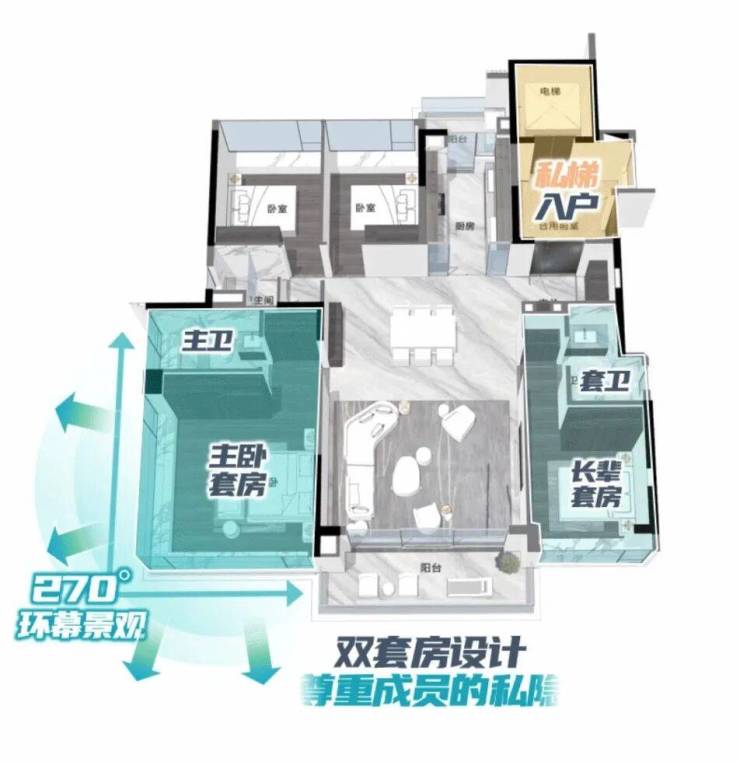 双主套、双阳台等设计,也同样为空间做“加法”,提升未来业主居住的生活质感。