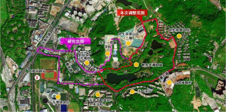 现状:地块位于天河区世界大观,悦景路以北,帝景山庄以西。目前交通比较单一,居民主要通过悦景路出行,东接珠吉路,西连奥体路,可通过珠吉路和奥体路连接广园快速、大观南路等主干道,上下高速较为方便,但公共交通方面,最近的大观南路地铁站距离小区 2 - 3 公里,出行不太便利。