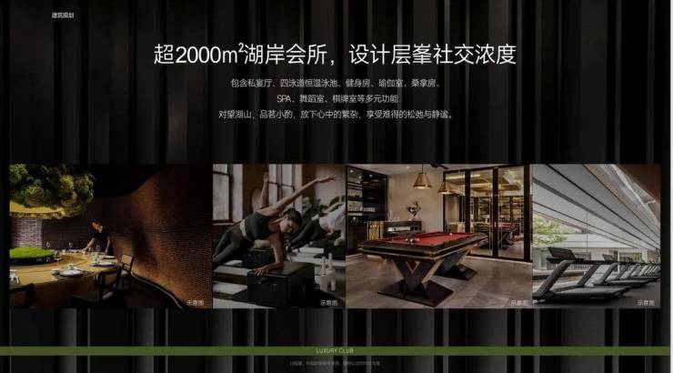 商业:商业规划以新加坡圣淘沙滨湖商业体为对标,沿湖打造约 1 万平的商业体,拟规划精品超市、多元餐饮、生活配套及儿童教培等业态,满足居民日常购物、餐饮、休闲和教育等需求。内部打造的约 2000 方湖岸会所,背靠住区、望湖而筑,设有四标准泳道的恒温泳池、儿童池、按摩池等,为业主提供高端的休闲娱乐场所。三公里范围内有优托邦大型商场、天河城百货、万科广场、时代 E - PARK 等,生活气息浓厚,满足居民多样化的消费需求。
