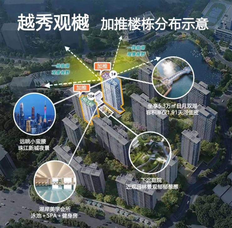 项目占地面积 206400 平米,建筑面积 133000 平米,容积率 1.91,绿化率 35%,总户数 760 户,车位配比 1:2.15,居住舒适度高。交通方面,现状虽有不足,但未来规划将新建道路接驳机场二高速,悦景路可能下沉式改造,交通短板将逐步补齐。教育资源优质,自配 15 班幼儿园和 24 班小学,小学引进广州天河外国语教育集团合作办学。生活配套丰富,商业规划对标新加坡圣淘沙滨湖商业体,沿湖打造约 1 万平商业体,内部有 2000 方湖岸会所,周边商场、医院环绕,且拥有得天独厚的山湖林海自然资源。户型设计亮点突出,如板楼设计、超高使用率、高窗地比等,能满足改善型购房者的需求。