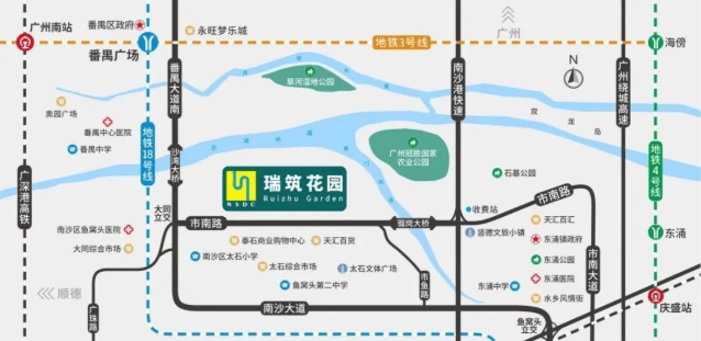 紧邻南沙大道,距离南沙港快速约1.7公里,便于驾车前往广州各区。