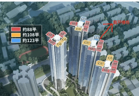 基本信息:占地面积约14,810平方米,建筑面积约104,693平方米,规划4栋楼,总层高达57层,容积率为7.5,总户数为1040户。项目采用4梯5户的设计,保证了住户的出入便捷性。