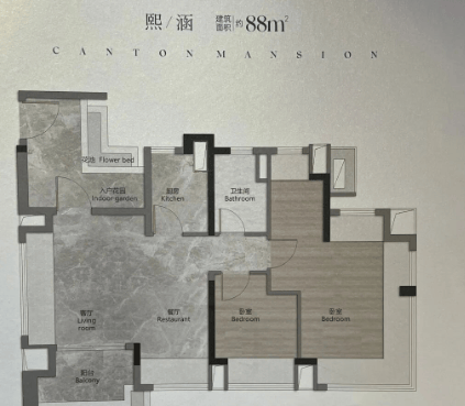 建面88平三房:入户花园阳台报建,客厅位置有一面墙报建飘窗,L型采光面,四开间朝南,居住舒适度高。