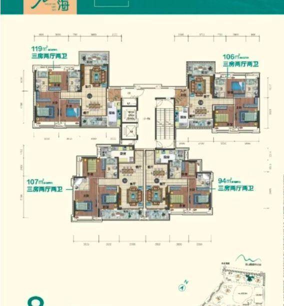 规模参数:占地面积 5.98 万㎡,建筑面积 16.28 万㎡,容积率 2.25,绿化率 35%。规划 9 栋住宅,共 930 户,均为望海瞰山且户户朝南的设计。两梯四户,总楼层 25 层,层高 3 米,总停车位 1296 个,车位配比 1:1.3 ,得房率 80%。售楼处电话:4009909752 。