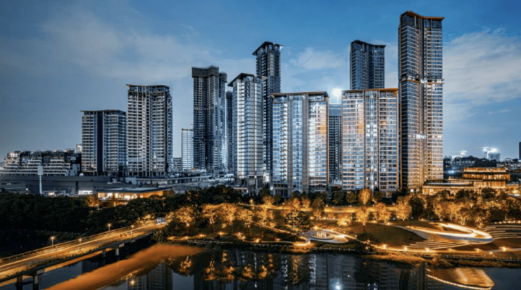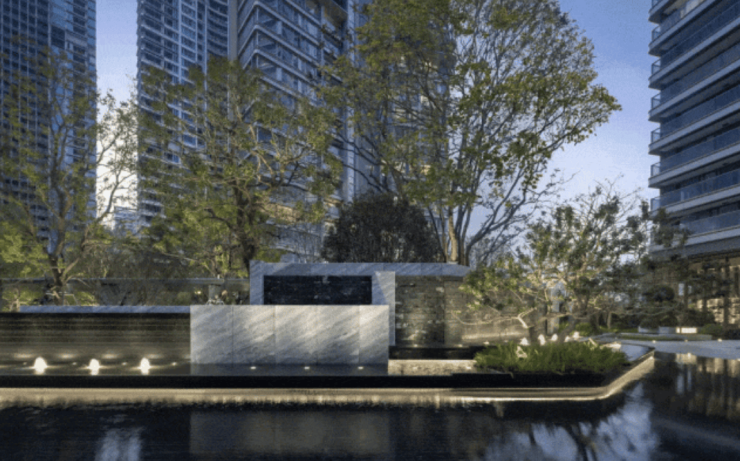 园林设计方面,项目采用全石材园林,灵感来源于毕加索解构主义,由新加坡JTL团队打造,主入口高约67米的景墙与核心麻楝树相呼应,形成CBD内独特生态景观。园区内水景、绿地与公共休闲空间无缝结合,实现城市生活与自然体验的高度统一。生活配套兼顾商业便利和生态宜居,使高端居住体验与日常生活需求完美平衡。