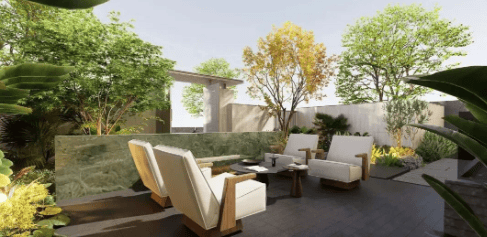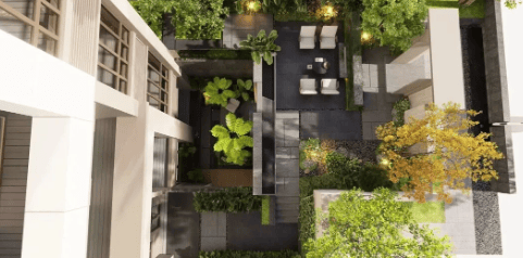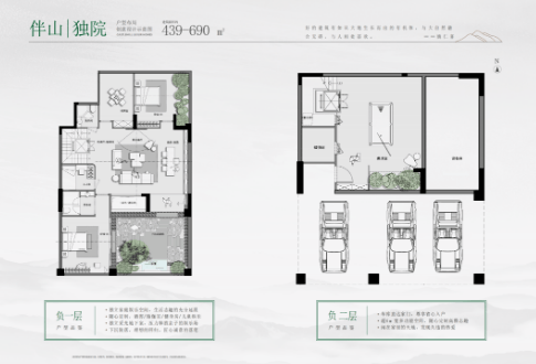 建面约439-690㎡的伴山独院户型,提供了独立的前庭后院和专梯专户设计,使每户都能拥有绝佳的观山视野,满足多代同堂或高端社交需求。