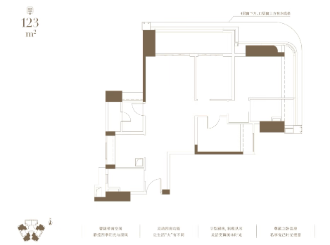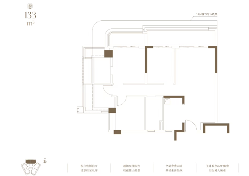 建面133㎡户型:独立电梯前厅,超阔观景阳台,收藏揽山美景。