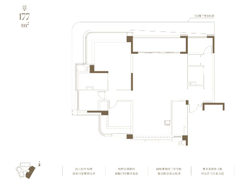 建面177㎡户型:纯粹东南朝向,俯瞰CBD繁华景色,奢华双套房主卧。