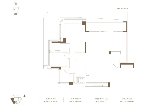 建面143㎡户型:奢阔餐客一体空间,宽界瞰景阳台,尽藏都会绿景。