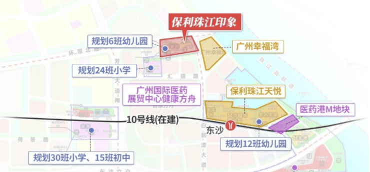 白鹅潭及东沙片区作为广州滨江板块的重要组成部分,未来发展潜力巨大。保利珠江印象周边规划完善,兼具商务、居住和高端生态功能,未来将打造国际化滨水生活圈。项目邻近珠江天悦、幸福湾等优质住宅,同时背靠广州国际健康港和健康方舟综合体,涵盖商业、游艇码头、酒店及产业综合体等高端配套设施,为片区注入活力和消费潜力。东沙片区地块规划科学,片区内交通枢纽建设完善,包括东沙立交和快捷路二期等,实现区域快速通达,未来价值增长可期。保利珠江印象以其稀缺滨江资源和优越的区位条件,为购房者提供潜力保障,同时具备长期升值的市场优势。