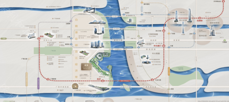 保利珠江印象地处白鹅潭滨江核心区域,交通资源丰富。紧邻在建地铁10号线东沙站,预计2025年开通,未来可直达广州主要商圈和核心区域。片区内还规划11号线和22号线,形成多线交通网络,通勤便捷高效。区域周边道路包括东沙立交和快捷路二期,可实现环城高速与东新高速的快速转换,提升出行效率。良好的交通配套使业主无论日常通勤、商务出行还是休闲活动都能轻松到达目的地,同时增强片区吸引力和住宅升值潜力。完善交通网络为购房者提供便利生活和投资保障,成为滨江小户型的重要价值加持因素。