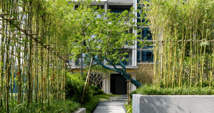 社区内部园林由山水比德设计院匠心执笔,以“游园·方寸间”为核心设计主题,打造“六廊八景三居游”的雅致园林布局,承袭岭南院落造园精髓,一步一景,移步换景,将广府游园雅趣融入社区日常。园林内规划叠水瀑布景观,流水潺潺增添灵动意境,搭配全冠移植甄选绿植,高低错落排布,四季有景、四季常青,兼顾遮阳纳凉、通风防尘的实用功能,适配广州气候特点。社区内还规划中央泳池、活力跑道、庭院休憩空间等,景观与休闲功能相融,畅泳赏景、慢跑健身、庭院闲谈皆可实现,于城芯繁华之中,私藏一方低密鲜氧的诗意栖居秘境。