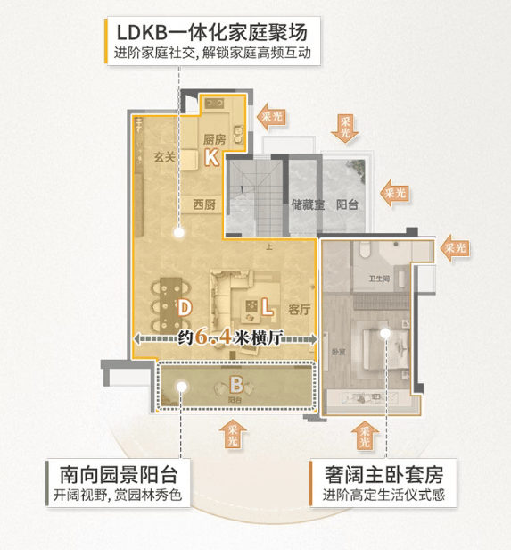 极致使用率:建面约123-163㎡的顶层复式新品,实现了约145%的极致使用率,通过创新的双层设计,在同等面积下获得近乎倍增的实际使用空间。